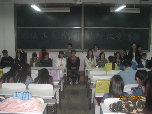 为引导同学们了解党史党章,深入学习党团知识。4月2日晚上6点30分,信工系团委政论部在资讯楼116教室举办了“党团知识竞赛”。本次活动由团委副书记李亚瑞,员工会副主席王路彬等担任评委,信工系入党积极分子以及各班代表参加了此次活动。