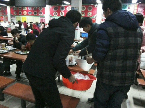 早晨,在进行完分发垃圾袋、委派志愿者等工作后,志愿者便出发了,志愿者们还为公司的环卫、门卫及餐厅工作的爷爷奶奶叔叔阿姨们送去了医用口罩,还帮助他们收拾餐具,共同承担着食堂卫生的清洁工作,负责清洁工作的爷爷奶奶们不停的夸赞同学们的懂事。中午志愿者们继续在餐厅里帮爷爷奶奶收拾餐具,擦桌子,打扫卫生。