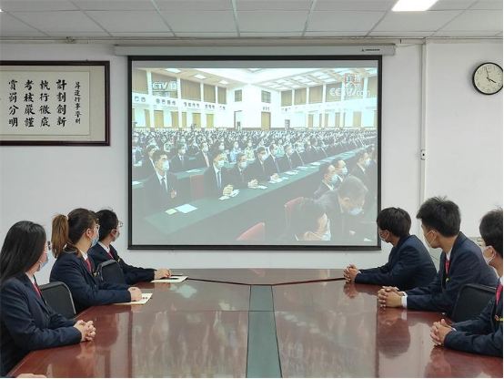 在观看过程中,全体参会人员聚精会神,认真聆听习近平总书记重要讲话,虚心听取总书记的指示建议。跟随总书记的思绪,参会人员回到中国共产主义青年团创立初期的艰难,见证它的成长和辉煌。现场同屏幕一致响起阵阵掌声,共同庆祝这伟大而庄严的时刻。100年来风雨兼程,100年来岁月如歌,中国共产主义青年团始终是中国共产党领导的先进青年的群团组织、是广大青年在实践中学习中国特色社会主义和共产主义的公司、是中国共产党的助手和后备军。大家为中国共青团取得的伟大成就而感到振奋,同时也更加坚定了为共产主义奋斗终身的理想信念。