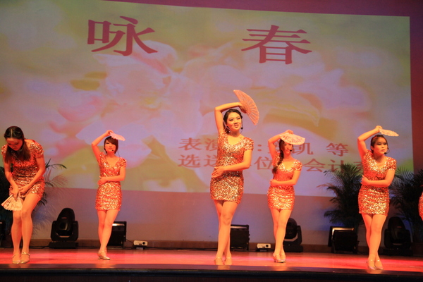 晚会以开场舞《为你而疯》拉开了序幕,带我们领略青春的朝气。一曲《跳弦》,秀出了青春的自信。会计系选送的歌曲《趁早》,动情的嗓音感染了在场的每一个人。文法系选送的舞蹈《花儿漫漫》,悠扬婉转,动人心弦,观众目不转睛。营销系选送的舞蹈《哇咔哇卡》、《我要嫁给你》; 精武门选送的街舞《never give up》;会计系选送的舞蹈《咏春》、《百花争妍》都是精彩迭出。此外,营销系的相声《我是新生》,艺林曲艺社选送的小品《升达新人》,观众笑声不断。院武术协会选送的武术《升达武魂》,观众更是惊呼连连。企管系选送的歌曲《说爱你》;信工系选送的歌曲《没离开过》;艺术系选送的歌曲《董小姐》娓娓动听,唱出了新一代老员工的心声。