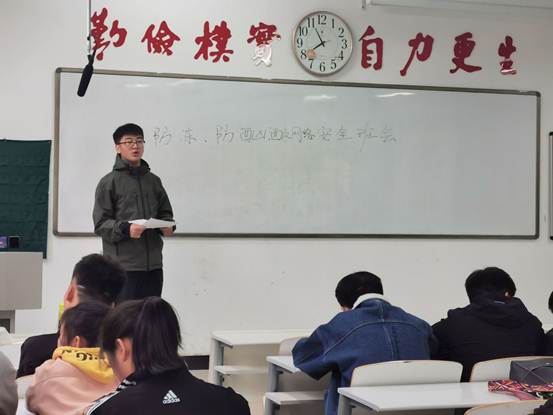 为了提高同学们的安全意识,按照公司部署,信工公司于本周内,以班级为单位开展了以“防冻、防酗酒”、“网络安全教育”为主题的班会。