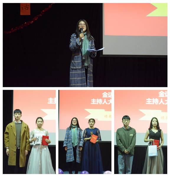 经过前期的初赛,最终有六位同学脱颖而出进入决赛。本次比赛分为模拟主持和才艺展示两轮。首先,在模拟主持环节中,同学们语言幽默稳重,内容丰富,形式多样,在短短的几分钟里充分展现他们扎实的语言功底,以及极具个人特色的主持风格。接着,在才艺表演中,每位选手都毫不保留的展示自己的才艺,其中5号选手黄诗诗带来的歌曲《all of me》,6号选手文莉的优美舞蹈,赢得了现场同学们的热烈掌声。