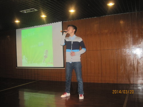 活动有单人唱和帮帮唱两个环节,初赛选拔的十名选手精彩的表演引来现场的同学热情高涨,为台上的选手鼓掌,喝彩。单人唱环节结束后神秘嘉宾的出场带动全场,将气氛再次推向高涨。帮帮唱环节选手精彩的表演更振奋人心,《听海》,《老男孩》,《小酒窝》等歌曲将现场带动的淋漓尽致。员工会主席张建阳做了最后点评。最后进行激动人心的颁奖仪式。青春的舞台,洋溢着热情,每个选手站在展示自我的舞台上,展现着真实的自我。