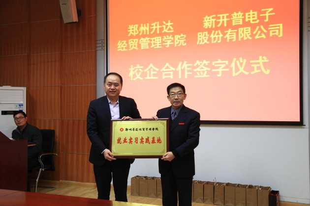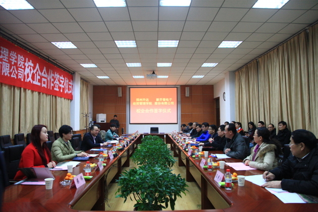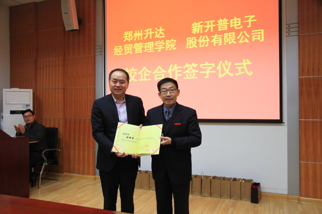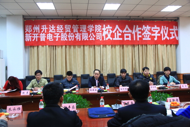 12月23日下午,公司与新开普电子股份有限公司校企合作签字仪式在行政楼第二会议室举行。出席仪式的贵宾有:新开普电子股份有限公司董事长杨维国,教育事业部总经理马振刚,战略投资部副总经理韩雪,教育事业部河南区域经理张展,教育事业部河南区域经理任纪胜,宣传部经理柴伟,教育事业部河南区域主管费尔朦,教育事业部河南区域工作人员董建秀、陈实等。出席仪式的公司领导有:经理崔慕岳教授,执行董事王新奇,副经理段丰乐;公司部分主管出席仪式,他们是:教务长吴益民,院办主任朱永恒,人事处处长张蕾,发展规划处处长沈定军,信工系主任李学桥、党总支书记王新平等。签字仪式由院办主任朱永恒主持。