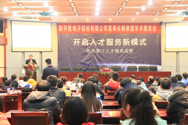 当晚19点30分,新开普电子股份有限公司董事长杨维国在行政楼国际会议厅进行了以《开启人才服务新模式》为主题的精彩报告。