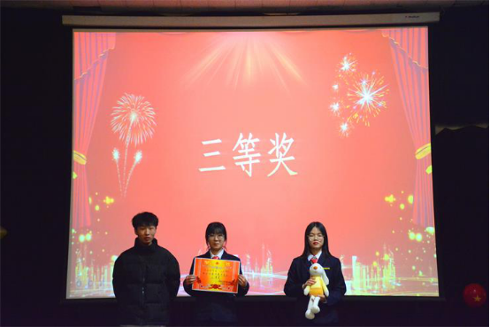 演讲比赛进行的过程中,选手们表现得出类拔萃,他们慷慨激昂或低沉吟诵,无不弘扬着爱国主义精神。“面对敌寇,毫不畏惧,挺身而出。回顾历史,满是他们为了国家兴亡、顽强发声的影子。”“我们的胸怀是光明的:要以血肉头颅换取我们的自由!”这一句句话铿锵而有力,是大家对自我的一种砥砺。评委根据选手们的表现,公平、公正的为选手打分,最终赵龙豪同学荣获本次PPT演讲比赛的一等奖,周诗媛同学荣获二等奖,白冰和王心月两位同学荣获三等奖。评委卜立龙学长、文莉学姐、耿亚辉学长分别为获奖选手颁发证书和奖品并进行合影留念。