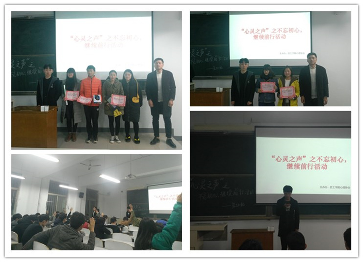 在公司心理健康教育中心的指导下,12月6日,由信工公司主办的“心灵之声”之不忘初心,继续前行主题活动在自勉堂111教室圆满举行。信工公司各班参选同学依次上台分享自己关于不忘初心,继续前行的奋斗故事。不同的是故事,相同的是同学们不忘初心,努力拼搏的奋斗精神。