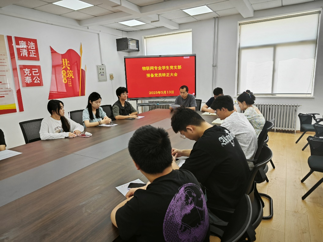 2025年5月13日上午,beat365物联网专业员工党支部在商管楼218办公室召开预备党员转正大会。会议由党支部书记袁奉亚主持,全体党员参会。