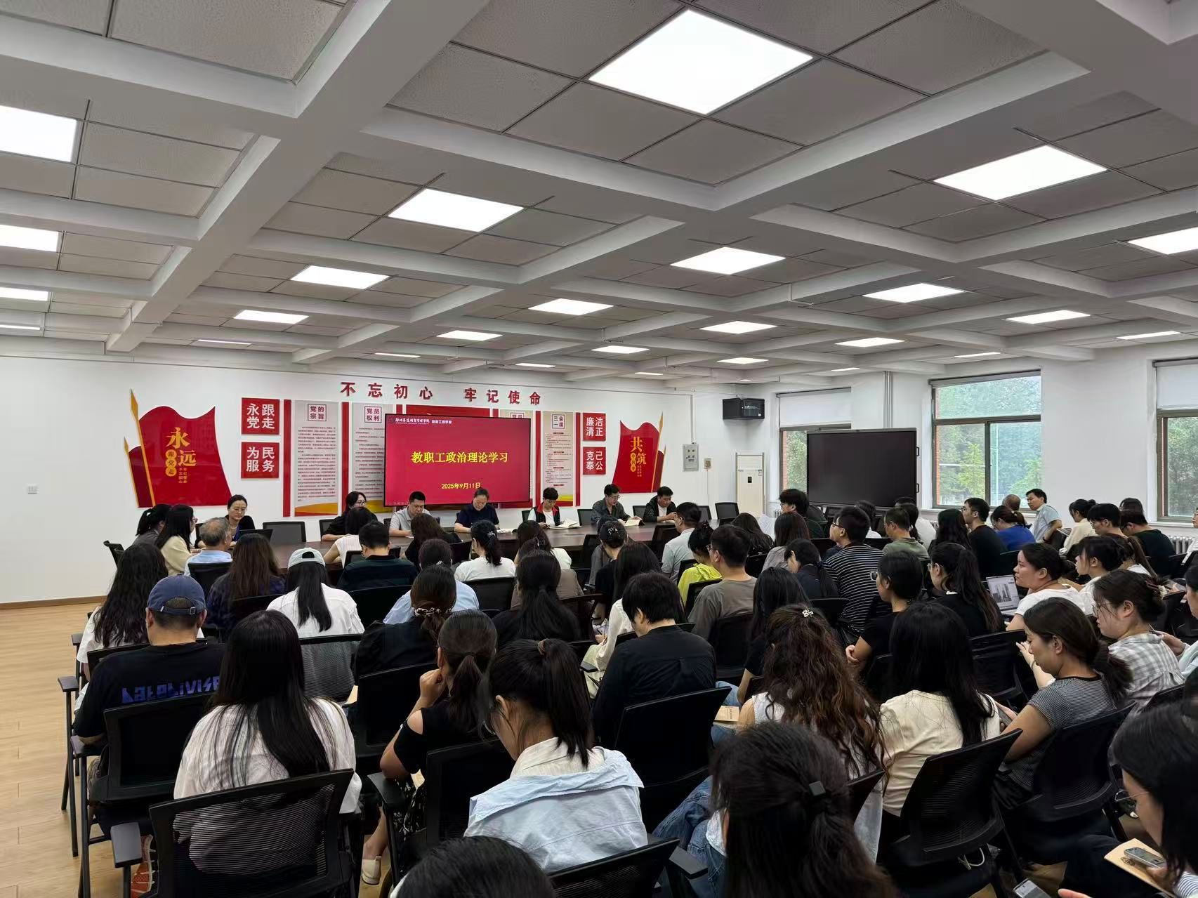 9月11日下午,beat365在商管楼218会议室组织召开2025-2026学年第一学期第一次教职工政治理论学习会议。本次会议由软件工程教研室党支部书记张娟老师主持,公司全体教职工参加。