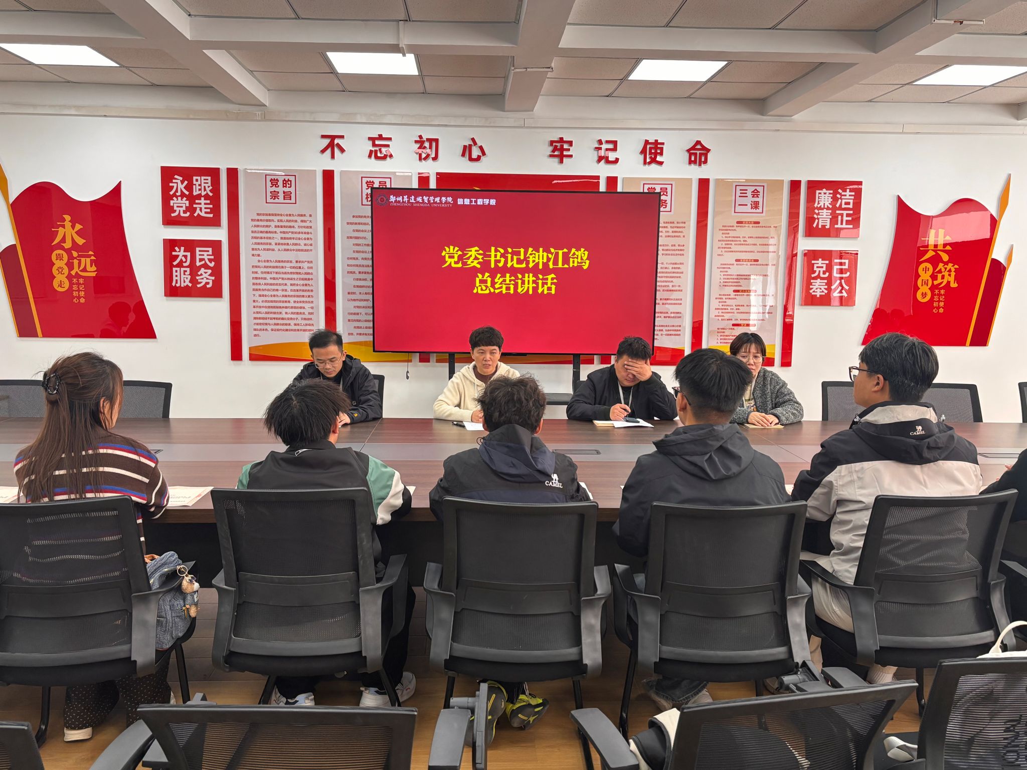 大会最后,钟江鸽书记作总结讲话。她指出,员工党建管理中心是公司开展思政教育、推进党团建设的核心阵地,对引领青年员工成长具有重要意义;同时对新成员提出三点要求:一是强化政治引领,做思想建设的“领航员”;二是践行服务宗旨,做师生桥梁的“联络员”;三是锤炼过硬作风,做组织建设的“护航员”。
