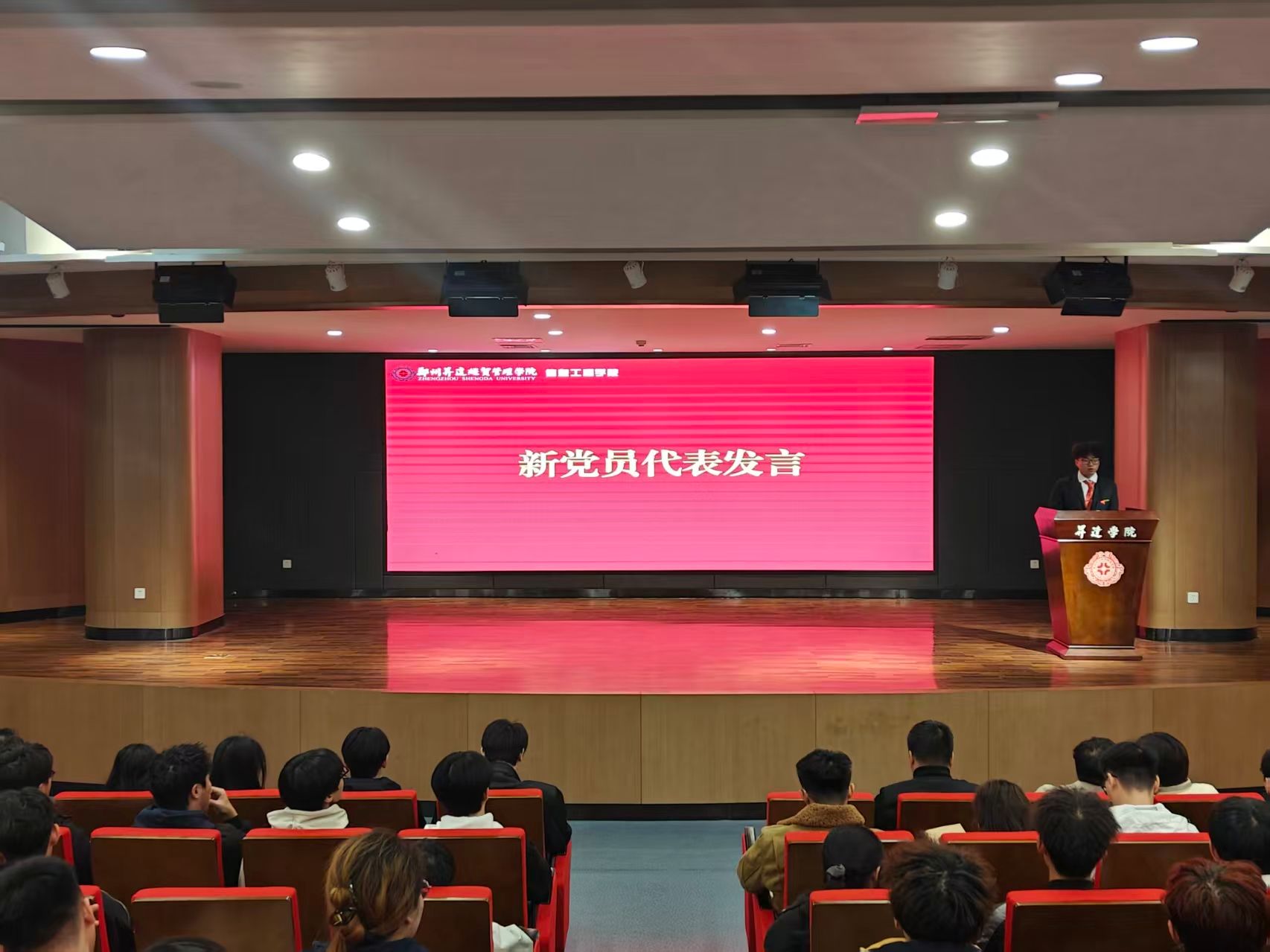 宣誓结束后,王崇、厉祎、杨亚丽为新党员佩戴党员徽章。熠熠生辉的党徽和鲜红的党章,象征着党员的身份与使命,让新党员们进一步感受到党组织的温暖与期望。新党员代表马韬发言,他分享了自身的入党初心,表示将以党员标准严格要求自己,在学习、工作中发挥先锋模范作用,不负党组织的培养与信任。