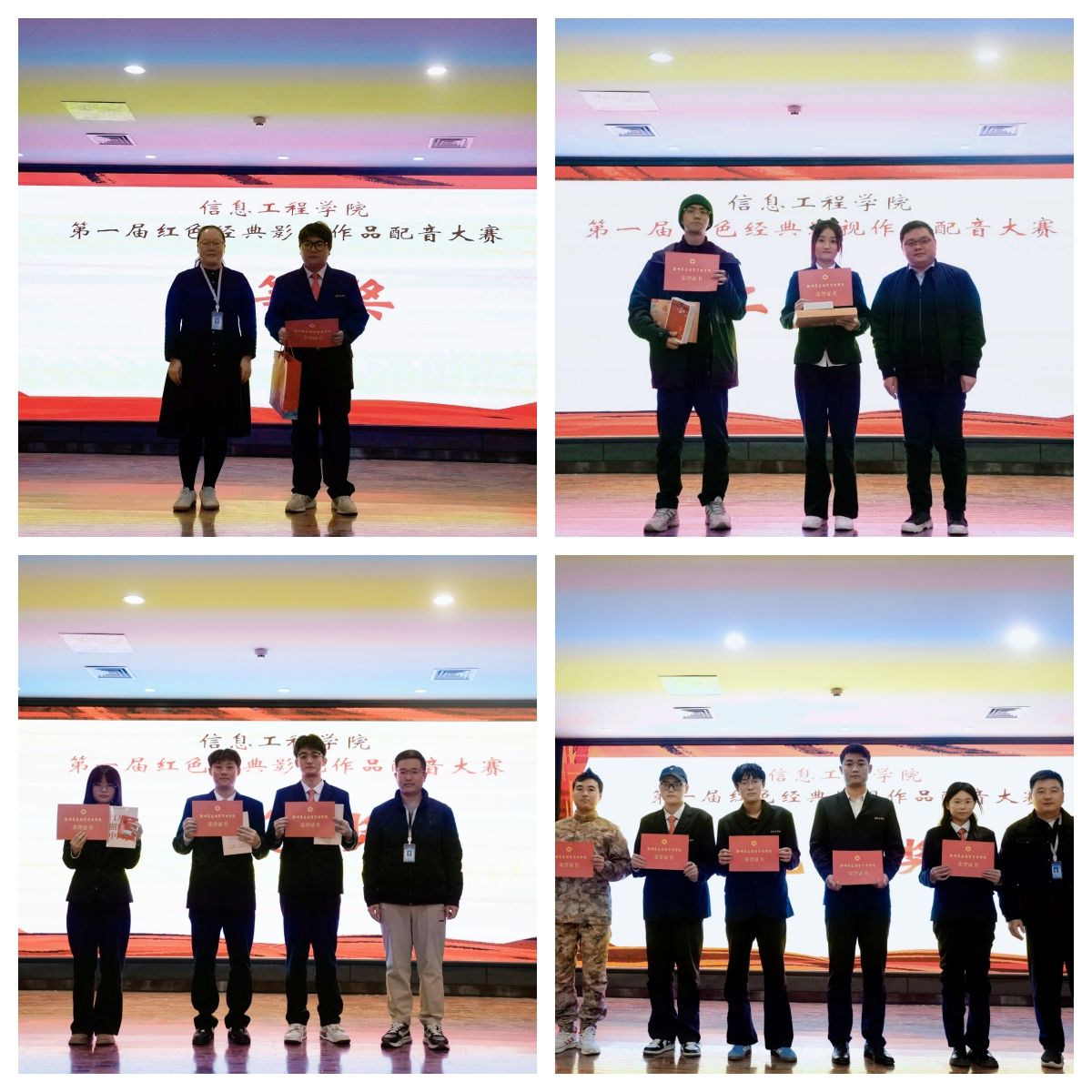 比赛过程中,评委团围绕形象吻合度、语音语调、流畅度、情感表现力、团队配合与精神面貌、内容贴合度六大维度进行专业打分,最终评选出一等奖1名、二等奖2名、三等奖3名及优秀奖8名。评委代表刘帅老师在点评中高度肯定了本次大赛的育人价值与选手们的精彩表现,他表示,选手们通过配音艺术让红色经典“活”了起来,既展现了扎实的专业素养,更彰显了新时代青年传承红色基因的责任担当,希望公司师生以此次大赛为契机,从红色经典中汲取精神养分,将爱国情、强国志、报国行融入日常学习工作。